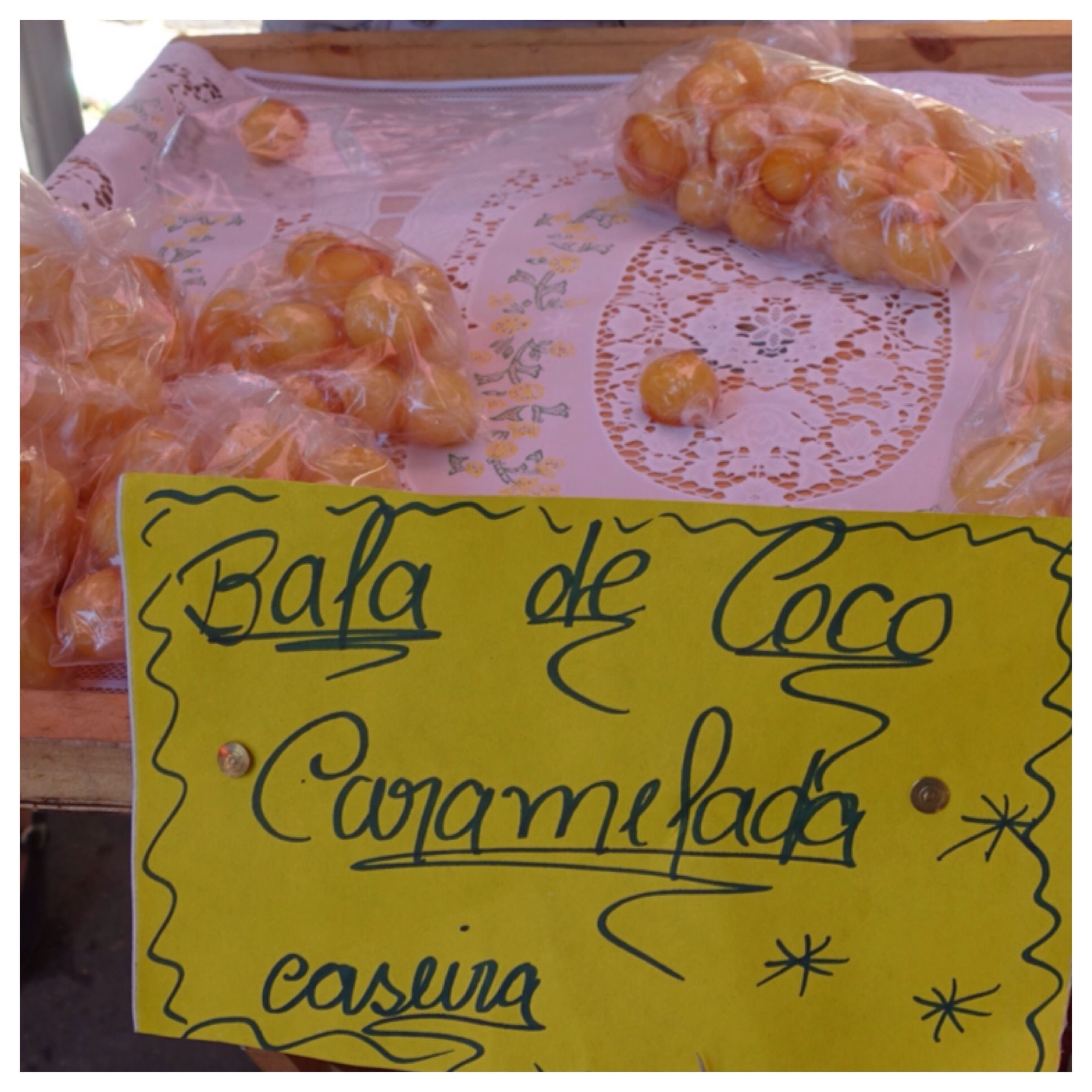 – Bala de coco. Our final tasting in the market was this delicious candy, a mixture of coconut and evaporated milk, enveloped in a hard caramelized sugar shell.