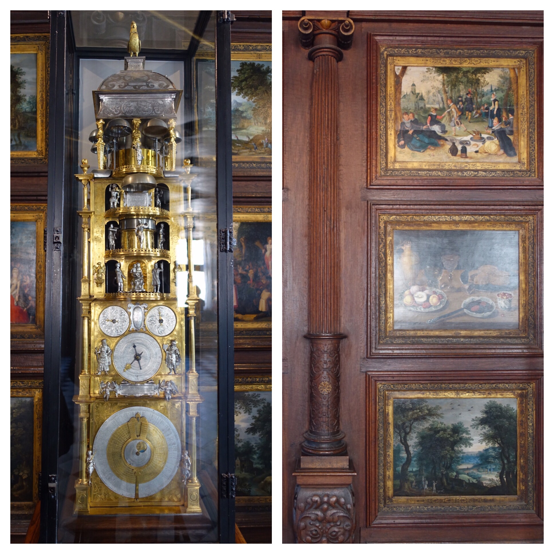 The wood panelled Winter Room features Dutch paintings and a golden astronomical clock.