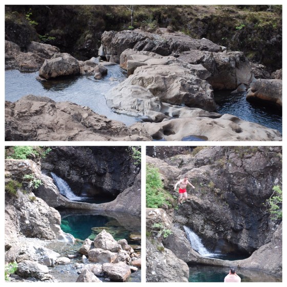Not far from the castle, we took a hike to the Fairy Pools. These picturesque pools are formed at the base of small waterfalls coming down the Cullin Hills. The Cullins are are dramatic, rocky hills that stretch along the southern coast of the island and dominate Skye’s landscape.