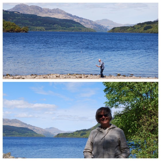 After leaving Inveraray, we drove alongside the famous Loch Lomand, a freshwater Scottish loch which crosses the Highland Boundary Fault, often considered the boundary between the lowlands of Central Scotland and the Highlands. It is 36.4 kilometres long. and between 1 and 8 kilometres wide, and with a surface area of 71 km, it is the largest lake in Great Britain by surface area. I of course serenaded Harv with my version of “The Bonnie Banks o’ Loch Lomond” – not a fun time for him I’m sure. We stopped at a lovely little picnic / camping area to enjoy the views of the lake.