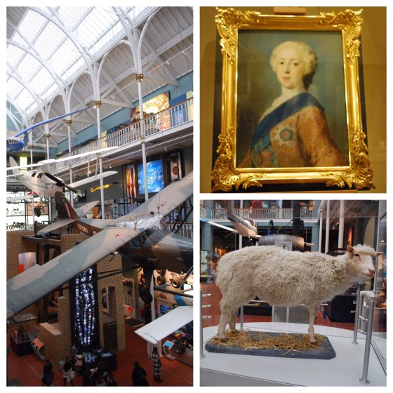 The National Museum of Scotland is a few blocks from the Royal Mile. This is a fabulous museum (of course, free admission) with a vast array of exhibits covering history, science (including Dolly the cloned sheep stuffed for viewing), technology and and the natural world. We spent a couple of hours and weren’t able to see nearly everything. We would certainly return if we were to go back to Edinburgh.