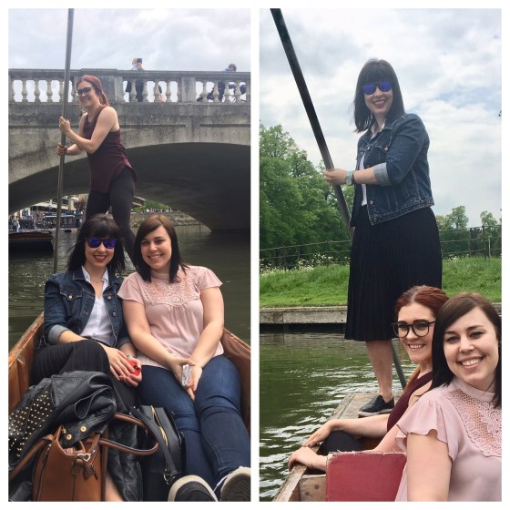 We tried a new activity with the girls – punting on our own on the River Cam. When we visited in November, we went on a punt with one of the tour companies. But this time, Kristin has had experience punting and we rented our own boat and off we went. Kris has the technique figured out and was able to punt while also being a tour guide of the ‘the backs’ (the river banks behind the colleges). Justine gave it a try and did very well.
