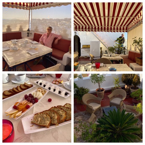 Breakfast on the rooftop terrace at Dar Chams was delicious and the views of the city and the sea were excellent.