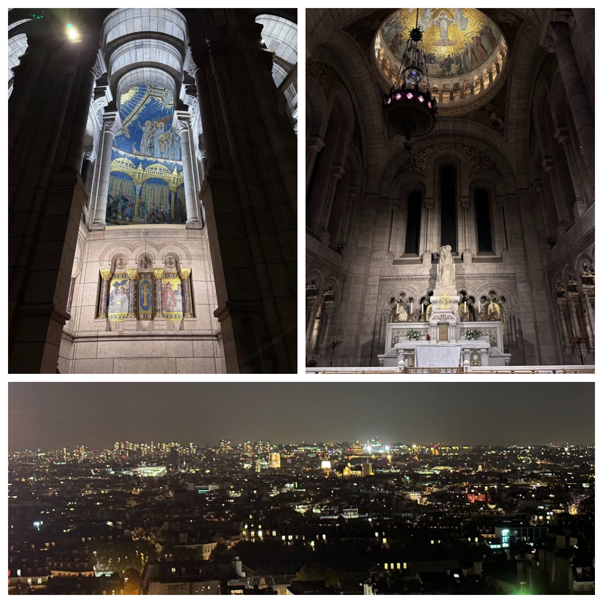 We visited Sacré-Cœur at mid-morning and found it over-run with tourists, waiting in a long line to enter and we left promptly. Our hotel was located in Montmartre so we returned after dinner one evening and found it beautifully lit and relatively free of people. We were pleasantly surprised to find it open as we had read that in October it closed earlier. There were no line-ups to enter and we found it had a hauntingly beautiful aura in the evening lighting.