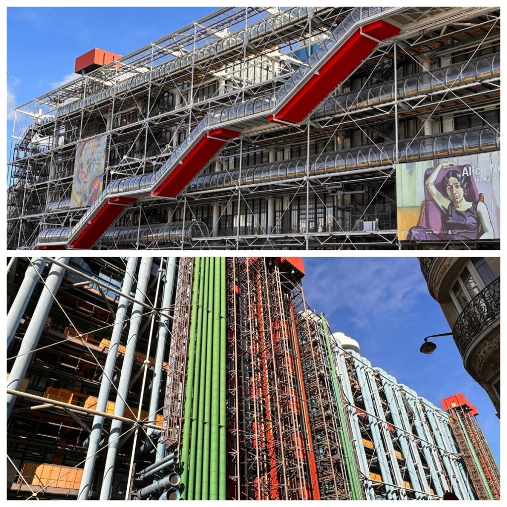 The Pompidou Center houses the Musée National d’Art Moderne. It is an exo-skeletal building with its functional parts on the outside – and color-coded. Interesting to look at….
