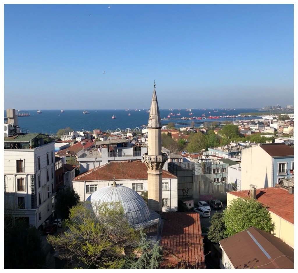 Hotels, large and small, are everywhere is Istanbul and I’m sure there are pros and cons to each area. We chose the Sultanahmet area in the Old Town historic core. Our hotel, the Muyan Suites, was a 10 minute walk away from the famous Hippodrome and the two largest mosques, but it was far enough that we were away from the crowds of tourists that descend on that area each day. It was close to the tram line and about a 30 minute walk to the ferry terminals. We were extremely happy with this choice of hotel – the rooms were great, breakfast was delicious and the staff went above and beyond to be helpful and friendly. There was a great view from the breakfast area!