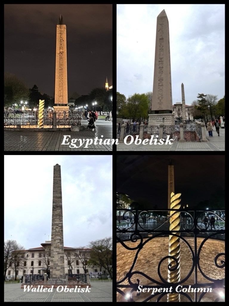 The Hippodrome is an oblong square that is five football fields long and was the site for chariot races in about AD 500. It now is home to a number of monuments. The most prominent is the Egyptian Obelisk which dates from BC 1500 and is carved with reliefs that tell the story of its journey from Rome to Constantinople where it served as the race track’s centre point.