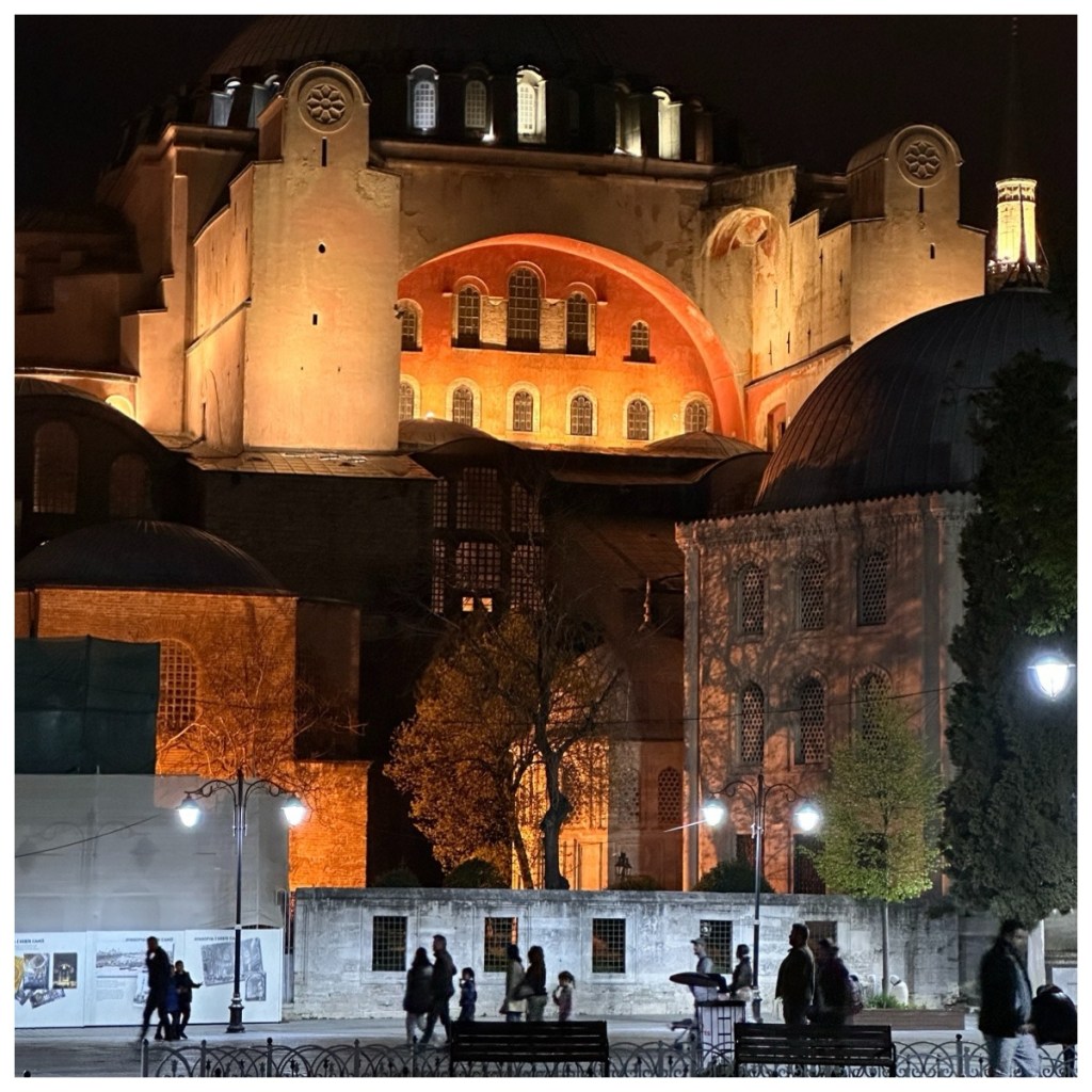 Sultanahmet Park is the centre of the historic core of the city. Here you are standing between the two main mosques, the Blue Mosque and Hagia Sofia. The Hippodrome stretches out from the Park. We visited the area many times on our way to various places, but the most magical was later in the evening on our first night. There were very few people about and we were enchanted.