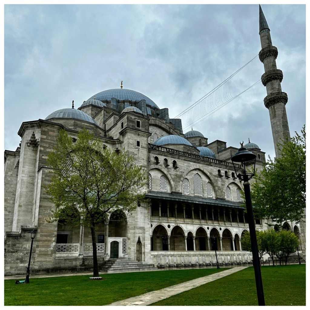 There are more than 3000 mosques in Istanbul. This number doesn’t seem so extreme when you realize that greater than 95% of the 15 million population are of the Muslim faith. The mosques range from grand buildings on sprawling grounds to small wooded buildings just off the street. They vary in style, both externally and internally. The most common form have a central dome and may have cascading smaller domes. Most have at least one minaret, the tall skinny tower. These were originally used for the call to prayer five times a day. Today the call is usually broadcast electronically, with the minarets having a symbolic presence.