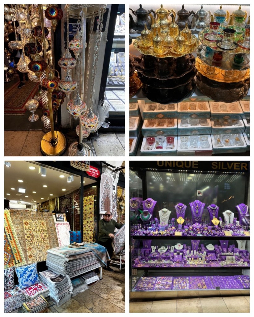 Istanbul is known for its great market areas. The Grand Bazaar is basically the world’s oldest shopping mall. It dates back to the 1400s and in 2014, it was listed No.1 among the world’s most-visited tourist attractions. It has 61 covered streets and over 4,000 shops, selling rugs to jewellery to spices and everything in between. The store keepers all try to entice you into their shop, with some quite entertaining patter, but they are respectful of a smile and ‘no, thank you’. We visited the Bazaar at 9 am on a rainy morning – and really had the place almost all to ourselves. It was so much fun to just wander and get lost!