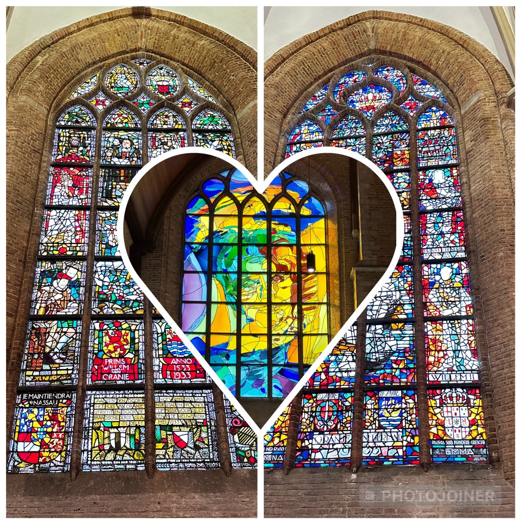 The Nieuwe Kerk (New Church) was built in 1393 (and they call that New). It has been though a number of disasters – a fire in 1536, iconoclast ransacking in the 1560s and a nearby gunpowder depot explosion in1654. William I of Orange was assassinated in Delft in 1584 and entombed in the New Church. Thus, the House of Orange (the Dutch Royal Family) bury all its family members in this church.