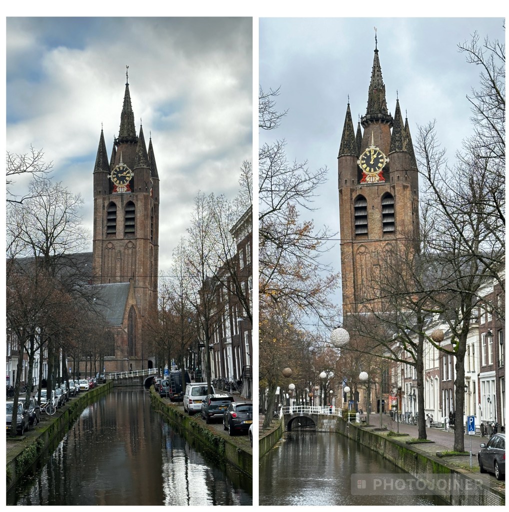 As well as the New Church, there is of course the Old Church (Oude Kerk). Located a few short blocks from the Markt, you first notice that the it is on a lean – the 75 meter tall brick tower leans about 2 meters from the vertical as it it built on marshy land.