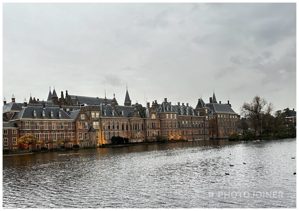 The Binenhof Parliament Complex sits next to the Hofvigver Lake in the centre of The Hague and houses the Prime Minister’s office as well as both house of parliament. There were news crews out and about on the day of our visit as it was election day.