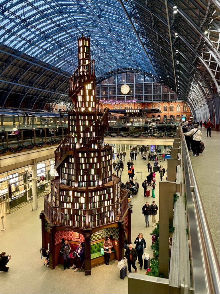 For 2023, the Saint Pancras International Station has a festive display that features a tree with a winding staircase and 270 shelves adorned with over 3,800 hand-painted books, including timeless classics like Charles Dickens’ “A Christmas Carol” and C.S. Lewis’ “The Lion, The Witch, and the Wardrobe.” The book tree was developed in collaboration with Hatchards, which claims to be the UK’s oldest bookstore.