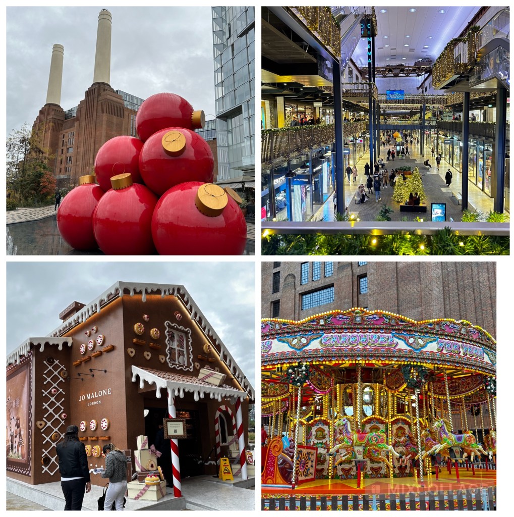 The Battersea Power Station sits on the banks of the River Thames. The power station and surrounding area have been brought back to life as a mixed use neighbourhood – a place for locals, tourists and residents to enjoy a blend of over 140 shops, restaurants, leisure and entertainment venues, parks and historical space. The Power Station mall and surrounding area were well decorated for the Christmas season.