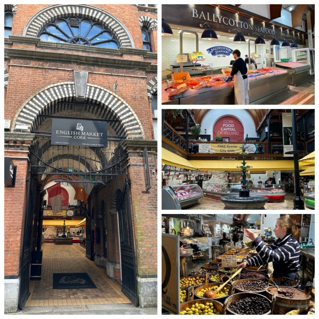 We enjoyed the atmosphere of Cork – it’s an easily walkable city with interesting sites (both historical and quirky), a lovely river walk and great food. The Grand Parade is a wide boulevard lined with restaurants and retail shops. At the entrance to the street beside the south channel of the River Lee, sits the National Monument, erected to commemorate the Irish Patriots who died during the period 1798 – 1867. The street passes by the English Market, Cork’s main library and Bishop Lucey Park (currently closed for a major revitalization).