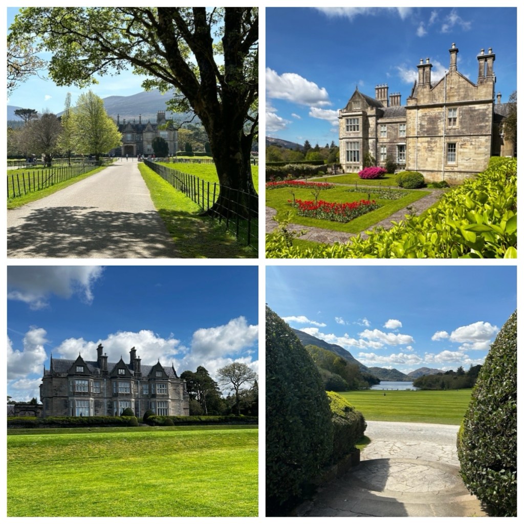 Killarney House was originally the stable block of a much larger mansion that was built in the 1720s. The mansion succumbed to fire in 1913 and the stables were remodelled as a family residence. Abandoned in the 1950s, the house was restored in 2016 and now is home to the Killarney National Park visitor centre. The gardens behind the house are lovely, with the Cherry Lane in full bloom on our April visit and wonderful views of the Kerry mountains.