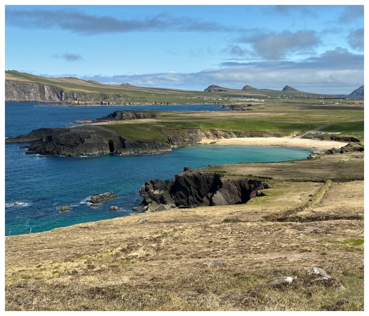 The Dingle Peninsula (Corca Dhuibhne) stretches 48 km into the Atlantic Ocean and is the westernmost point of Ireland. Some also say the westernmost point of Europe although apparently, Portugal disputes this claim. Head west and the next stop is Newfoundland – having been at the easternmost point in Newfoundland, we have seen that part of the Atlantic from both sides! The peninsula is 24 km wide at its widest.