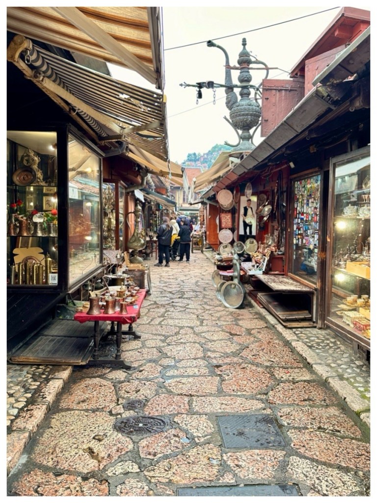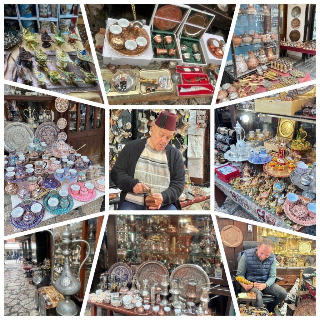 A particularly authentic lane is Coppersmiths’ street (Kazandžiluk). Here you can see craftspeople at work, hammering beautiful works of art from copper. The items you could buy were many and varied; as one writer put it – it’s the perfect place to buy that copper Bosnian coffee set that you will never use!