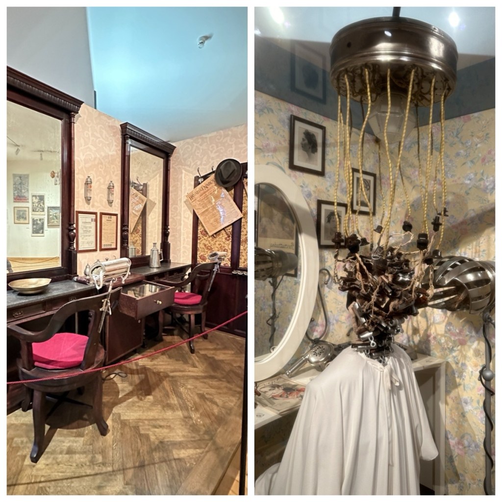 I just had to include these pictures of a barber shop. Can you imagine having your hair styled with this apparatus???