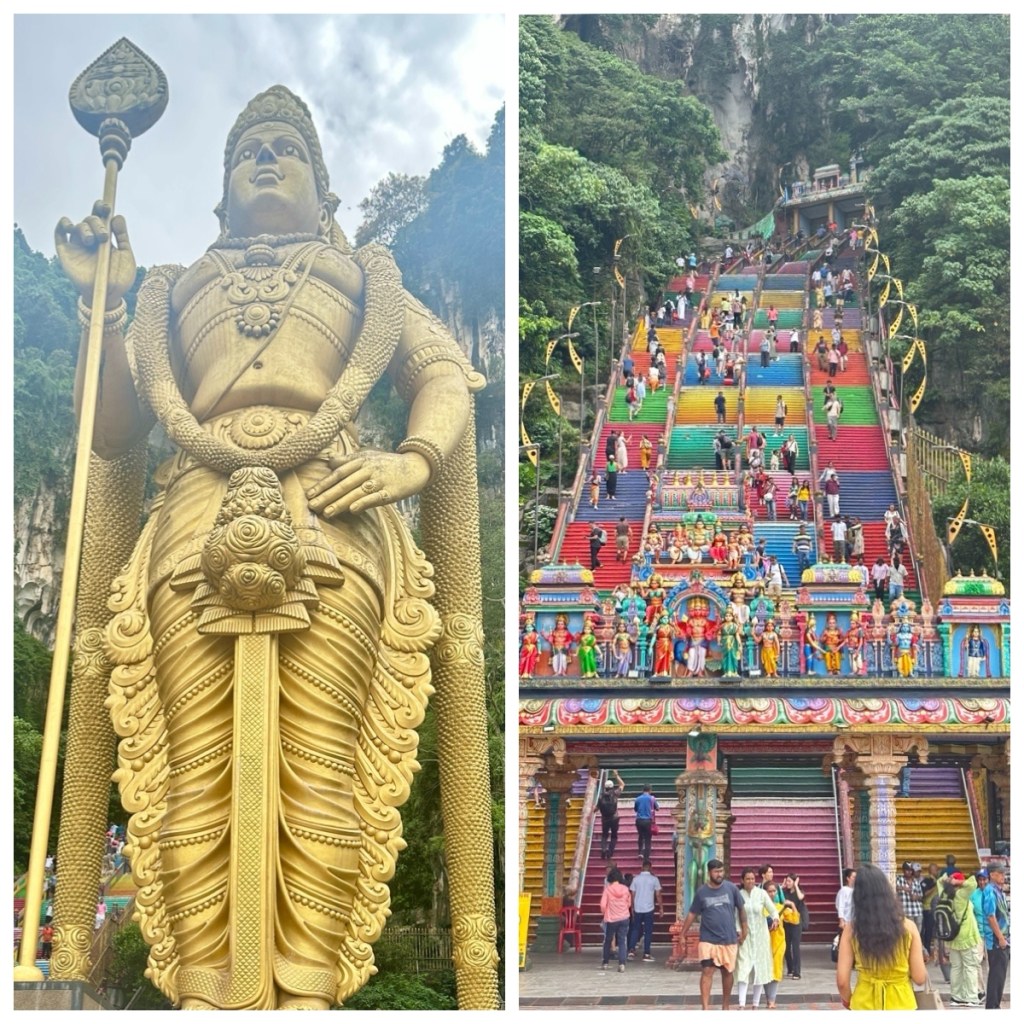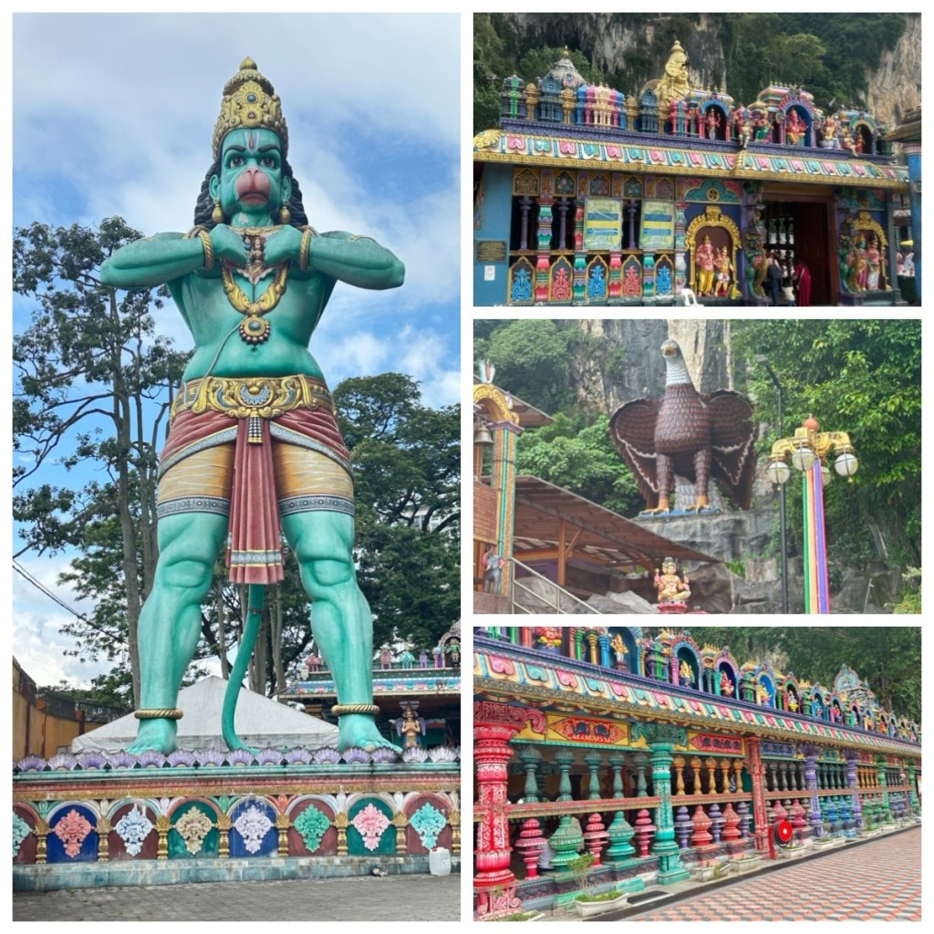 On Day 3, we headed out with a Grab (Asia’s version of Uber) to the Batu Caves. This series of caves is set high in a range of rugged limestone cliffs. The caves have long been known to the indigenous people of Malaysia but did not gain notoriety until American naturalist William Hornaday came upon them in 1878. The largest cave was converted into a shrine in the 1890’s and soon became the most important pilgrimage site for Malaysia’s Hindu population.