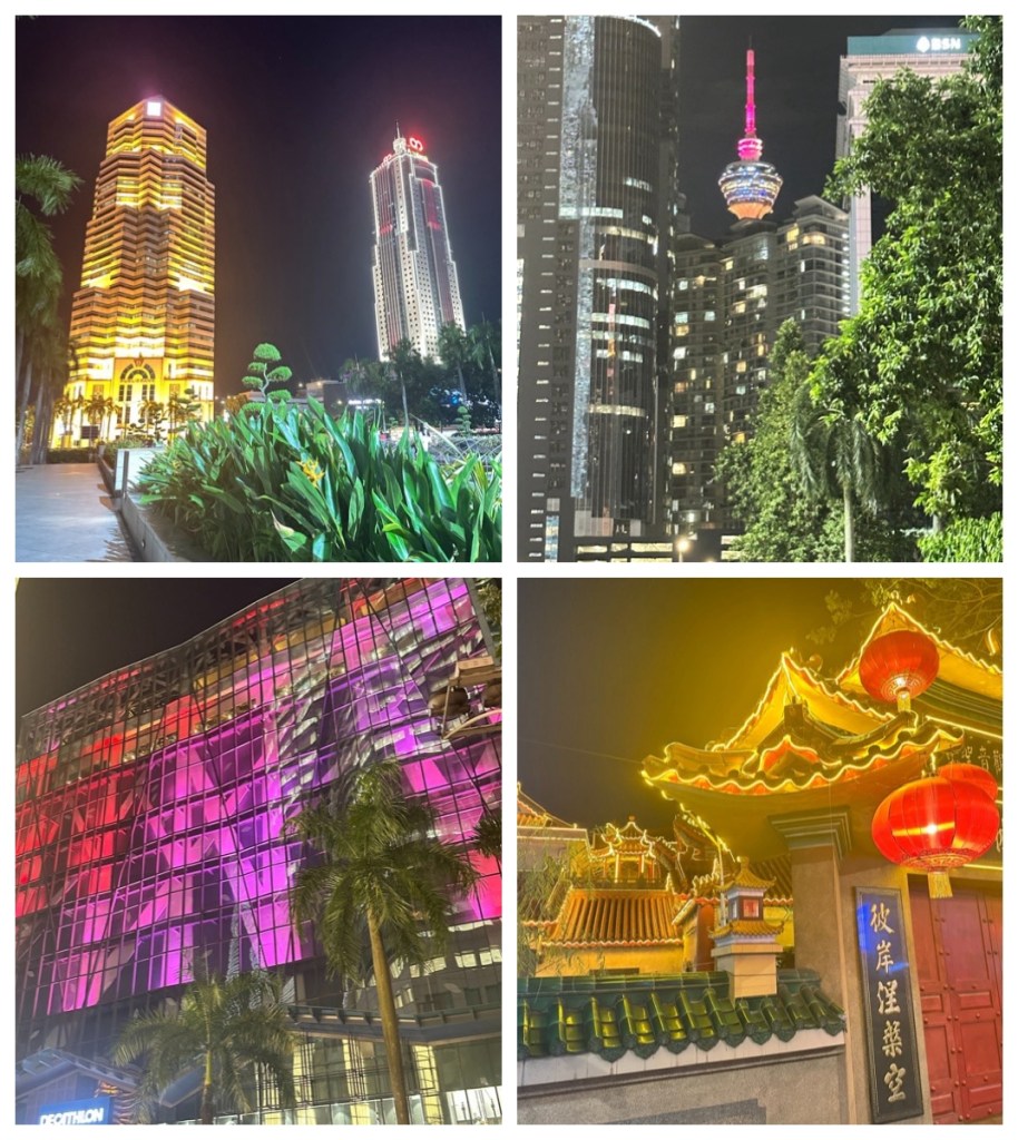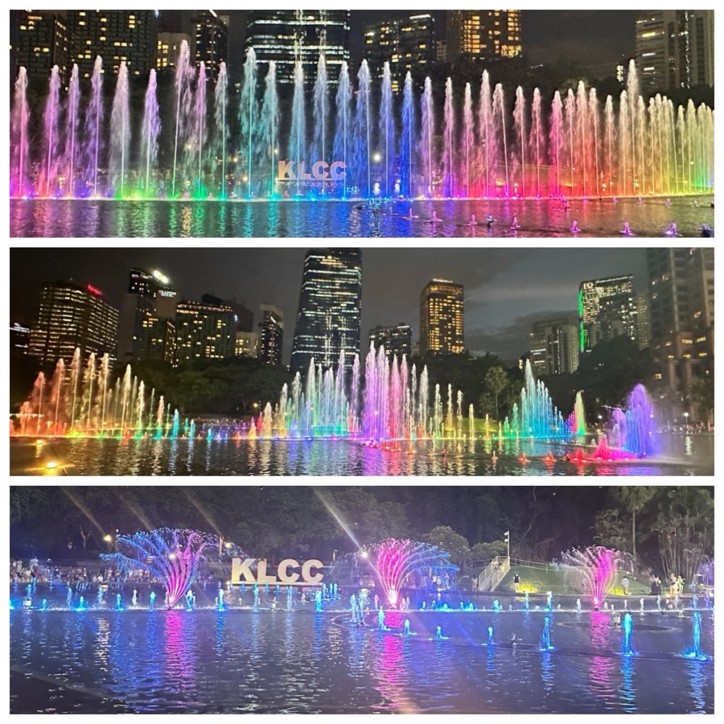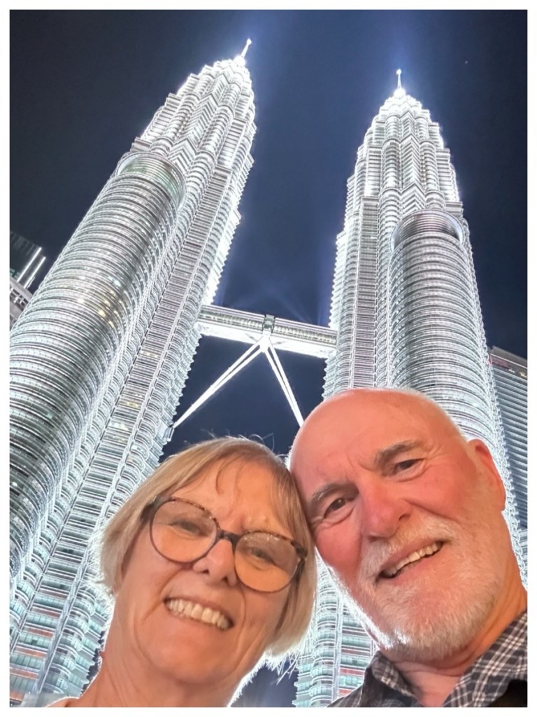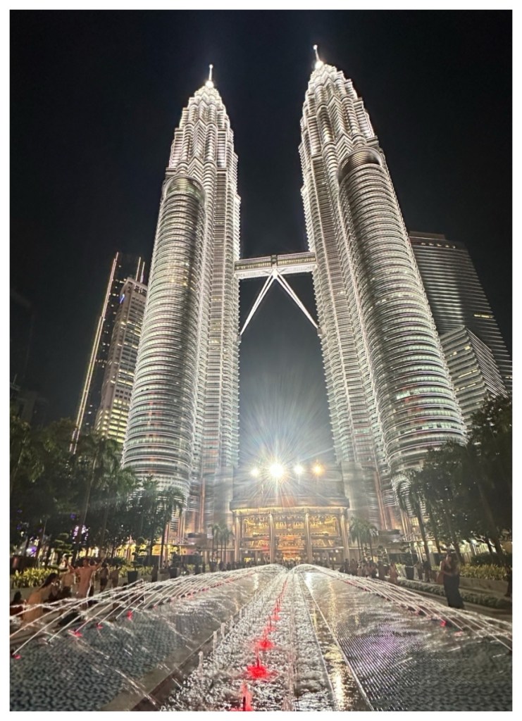 Returning from these very interesting excursions, we took a few hours to relax at the hotel. We find that in this heat and humidity, we need to pace ourselves (and we aren’t as young as we used to be 😉😳😀). We then had a light dinner and headed to the KLCC to take in the night lights.