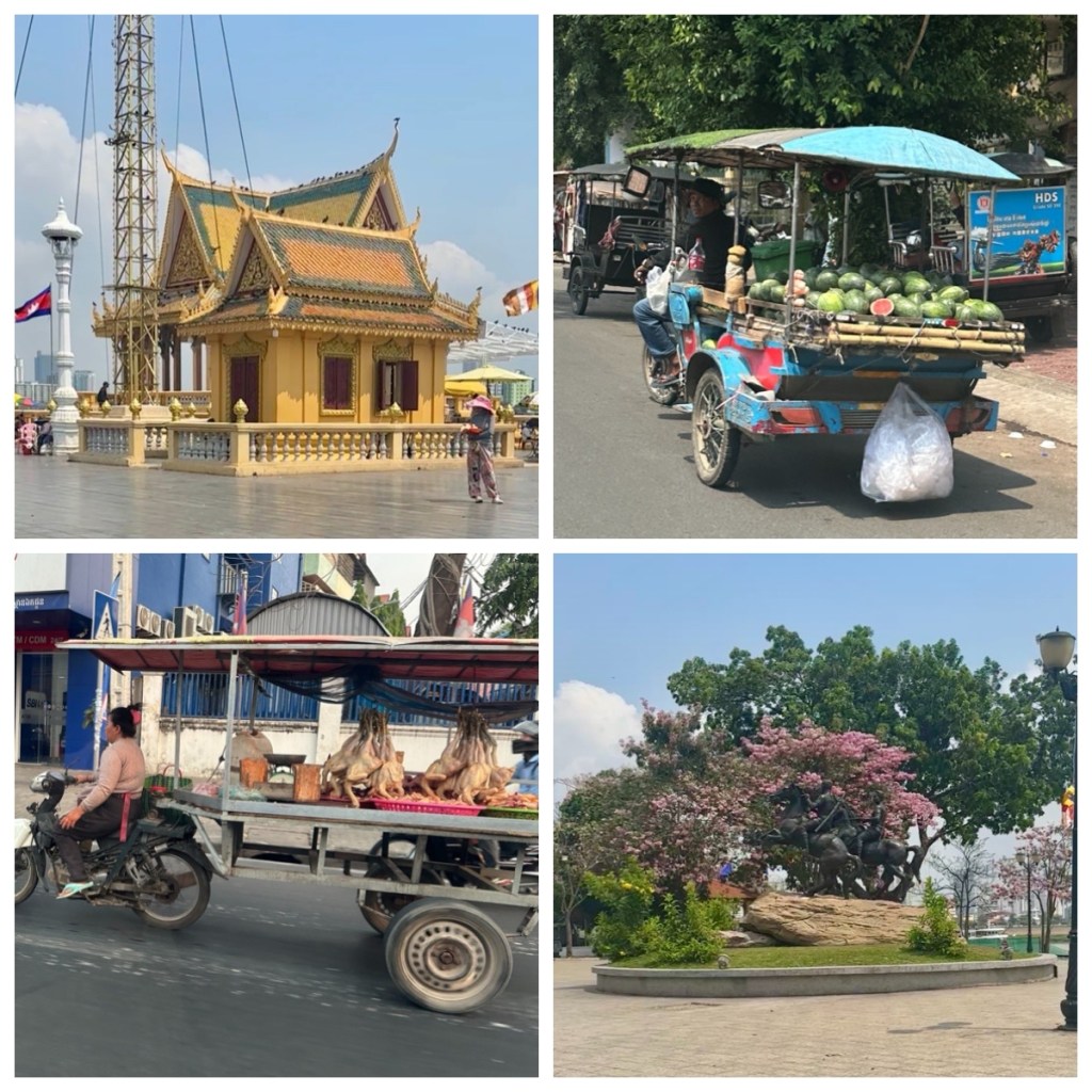 The traffic in PP is just as chaotic as in SR. Motorcycles and scooters are everywhere, intermingled with many cars and Tuks Tuks. We are unsure what the purpose of stop signs would be, as no one stops. They slow down and adeptly manoeuvre around each other. In PP, there are a few traffic lights and the traffic does obey these.