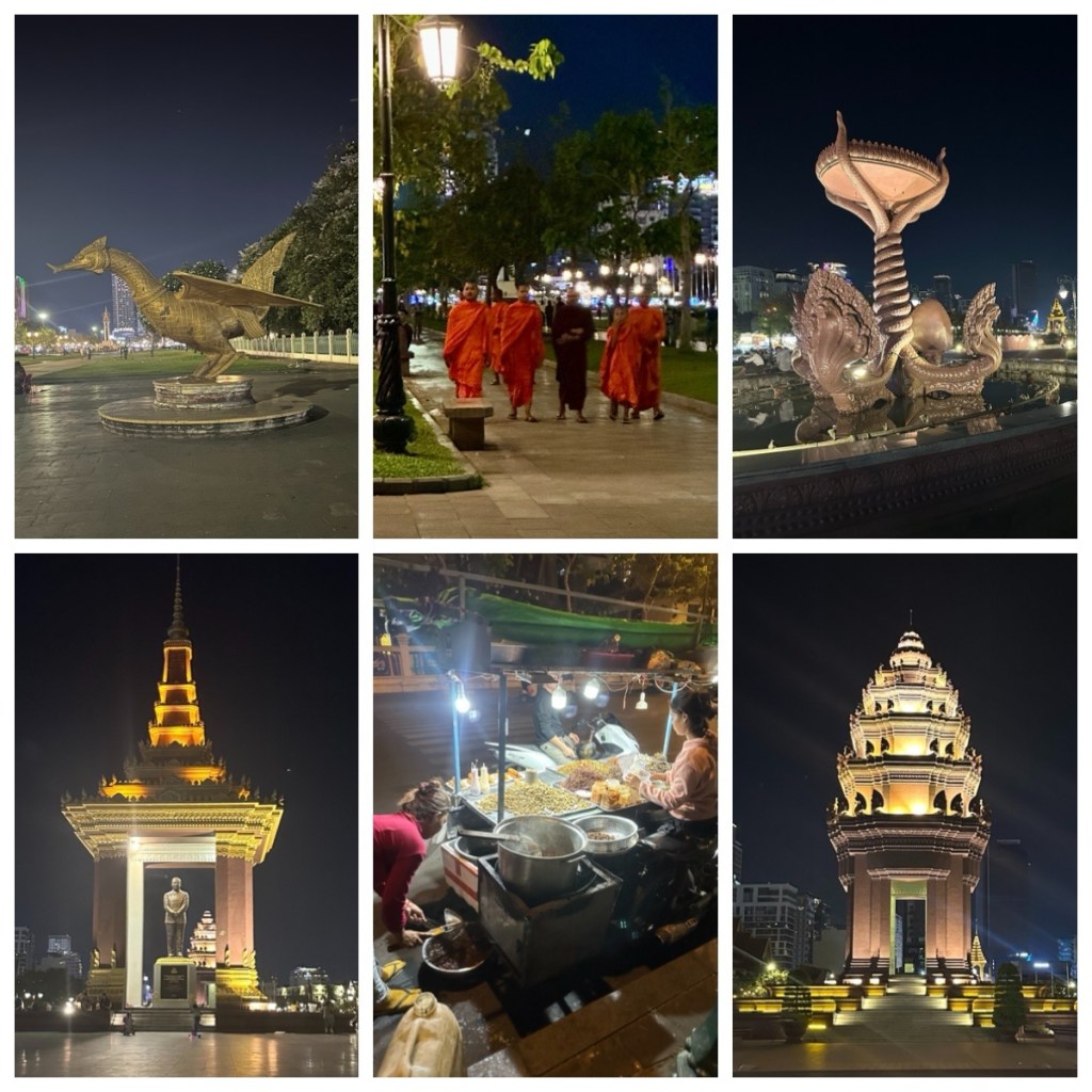 Tom started the tour by stopping at Independence Square, featuring the Independence Monument (or Victory Monument). This dark-red sandstone tower was built to commemorate independence from the French in 1953. It now also serves as a cenotaph for the country’s war dead.