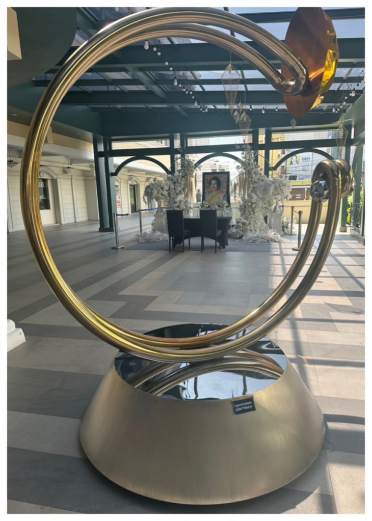 Stop #4: We journeyed back to Bangkok and stopped at the Old Siam Plaza, a shopping mall in Wang Burapha, a historic neighbourhood. Throughout Bangkok, displays to honour the recently deceased Queen Mother were evident. At the shopping centre, a book for offering tributes was present.
