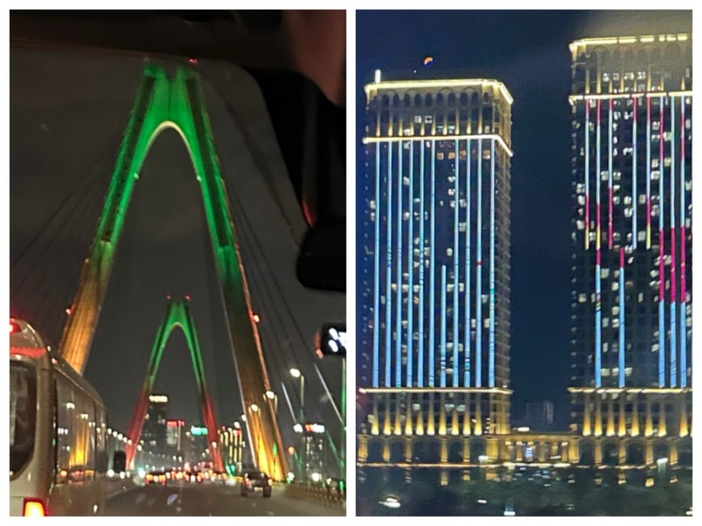 Leaving Luang Prabang, we travelled on Vietnam Air for a quick flight to Hanoi, Vietnam where we were met by a driver from our hotel. As we drove in to the city, we noted there is a lot of bright neon lighting!