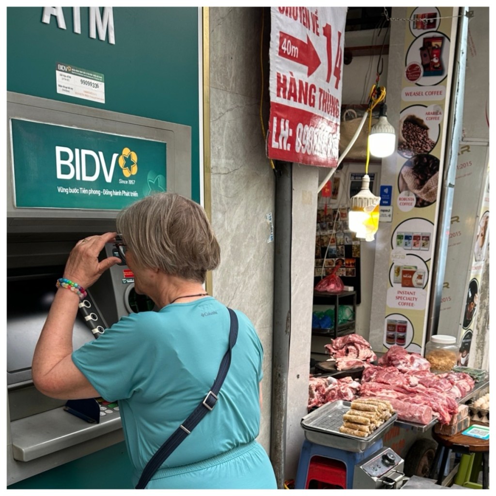 Day 1: Another hotel with an amazing breakfast! This has certainly been the theme on this trip. We then went in search of Vietnamese Dong (the official currency). We tried the ATMs in front of a number of banks to no avail – these machines either wouldn’t even take a card or stated withdrawals were unavailable. We spoke to other travellers having the same issues. Then we tried a stand-alone ATM across the street from the hotel and it was a success! One of our hotel friends said it was a new machine and not yet on Google Maps so didn’t get a lot of traffic. It was located right next to a street stand selling raw meat but it gave us our cash so we were happy.