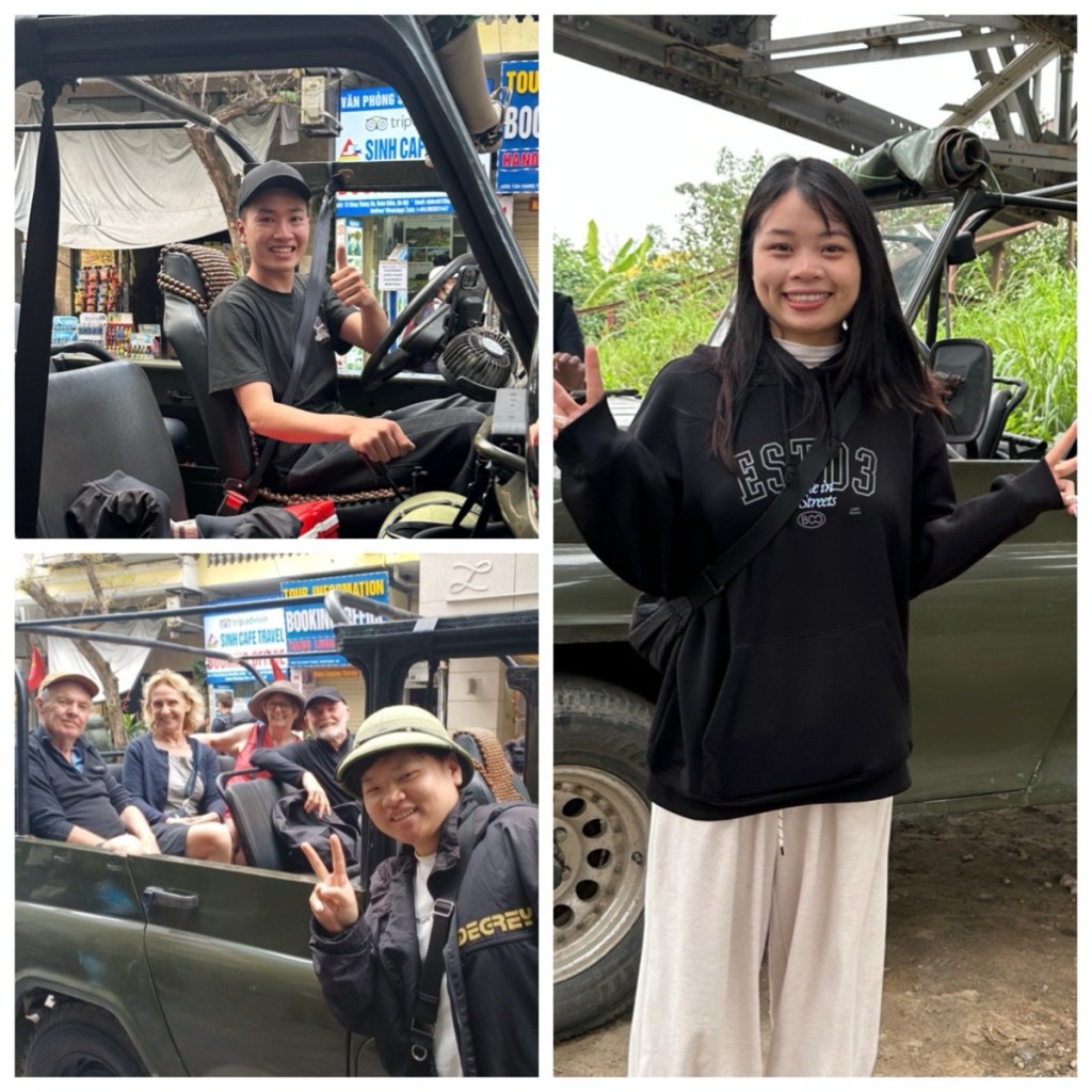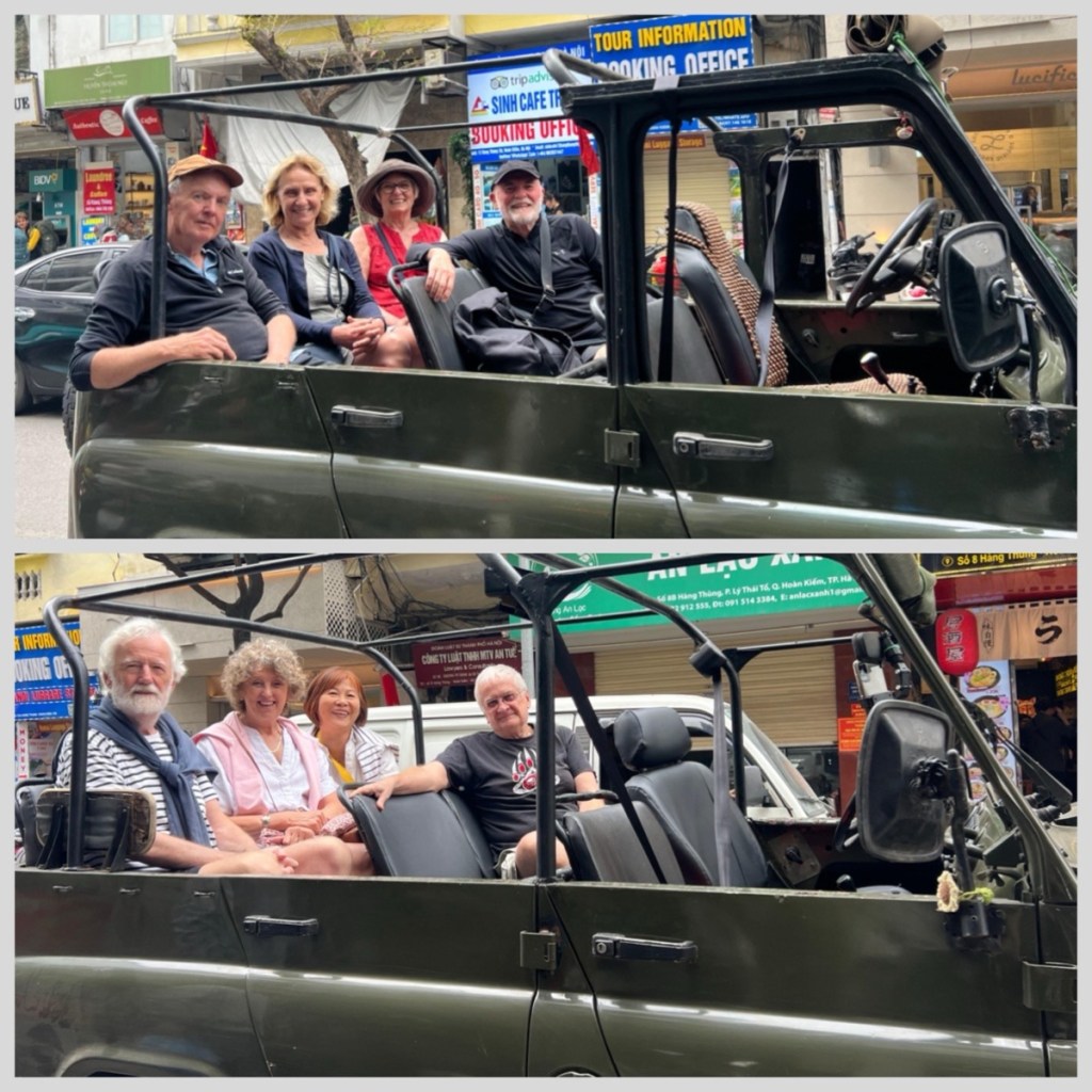 Stop #2: At noon, we were ready for the first of our tours booked by Ms Phan Toan. On our Hanoi Jeep Tour , the eight of us climbed into two WWII Russian Jeeps with some great young people. In our jeep, we were accompanied by guide Summi and driver Minhba. Guide Hoa from the second jeep partnered with Summi at each of the stops to provide great information.