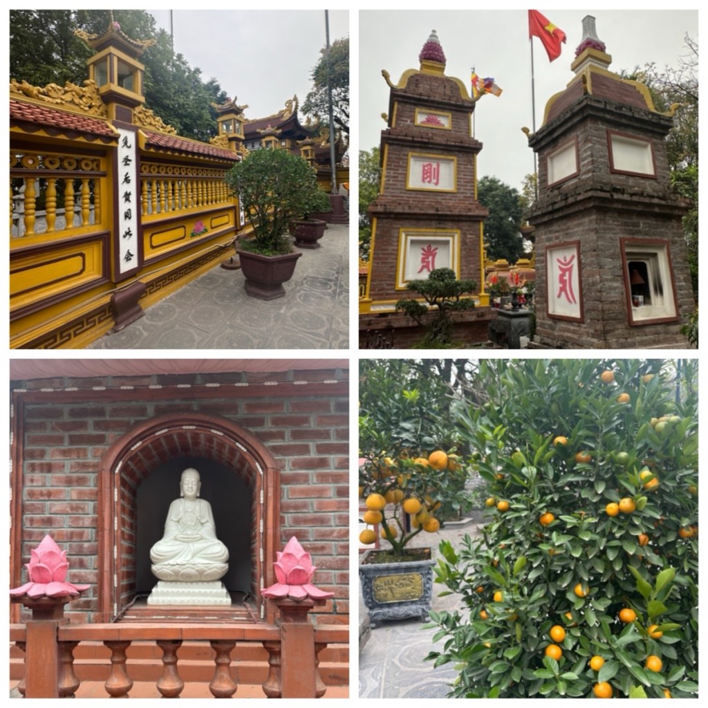 Stop #1: Our first stop was at the Tran Quoc pagoda. As we have travelled in Asia, we have noted that the differences between the terms temple and pagoda can be confusing. Our guides Sinh described the use of the terms in Vietnam in this way: