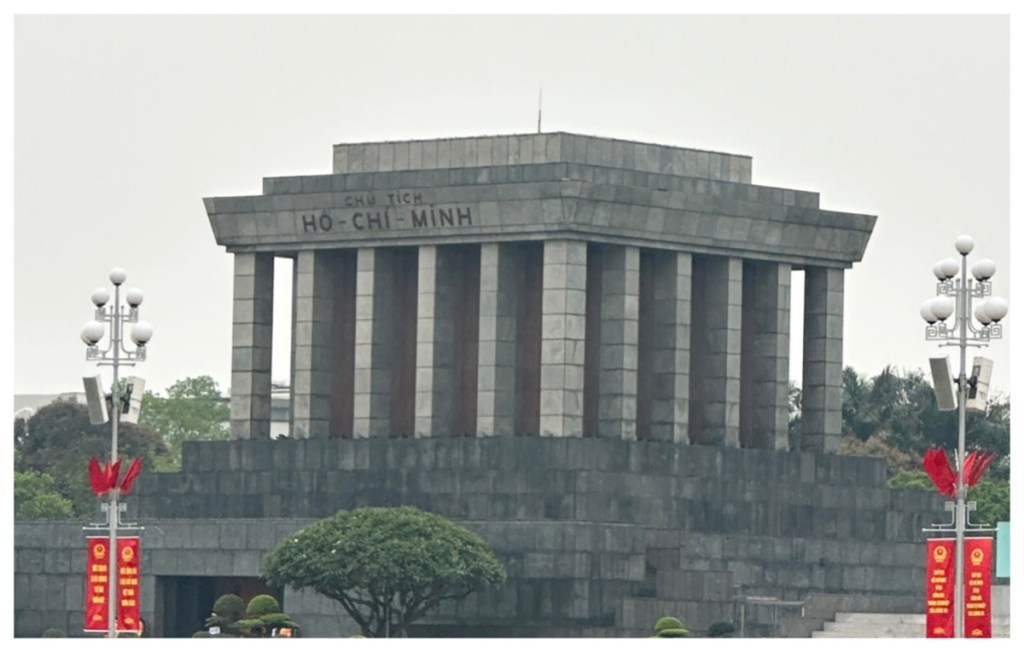 Stop #2: We next travelled to the Ho Chi Minh Mausoleum. This is a very special place for the Vietnamese people. Our guide told of the first time he was to visit when he was 14 years old – he said he was so excited that he didn’t sleep for days ahead of time. This type of excitement was obvious in the many, many school children that we saw while we waited in the long line to visit the mausoleum. The children were enthusiastic and so friendly. They were the highlight of this stop. The actual walk-by of Ho Chi Minh’s body took about 2 minutes and was quite anticlimactic for us foreigners. However, we do recognize the significance of this man to the people of Vietnam and the reverence they pay to him.