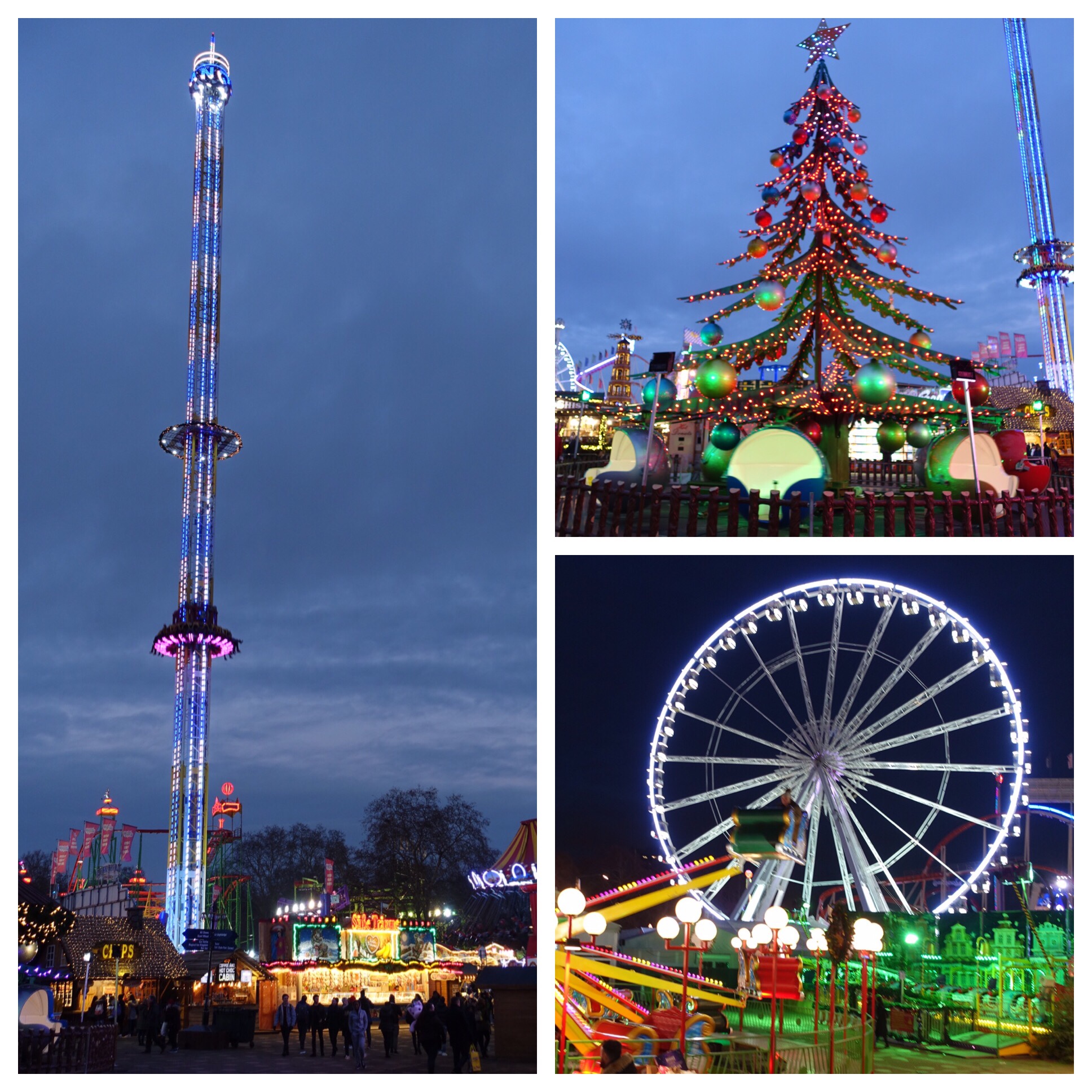 For the Christmas season, a huge area in Hyde Park becomes Winter Wonderland. This includes 3 main areas, each impressively expansive – a Christmas Market, the Bavarian Village and an incredible amusement park, as well as many individual presentations. We wandered around for a while, made a few purchases and had our last Gluwein of the trip.