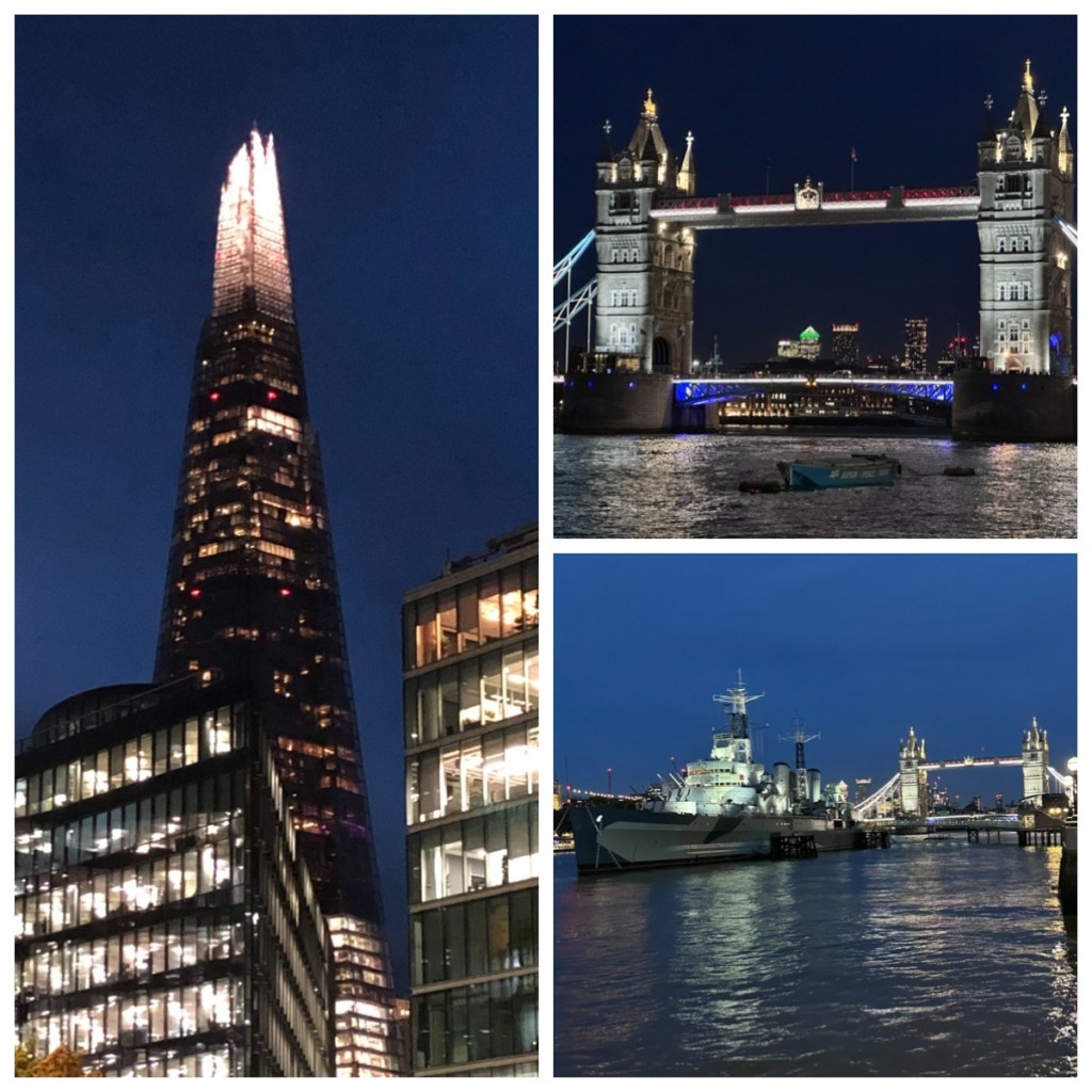 It gets dark earlier in London in October so after a fun Uberboat ride down the Thames, we were actually out late enough to see the night scenes!